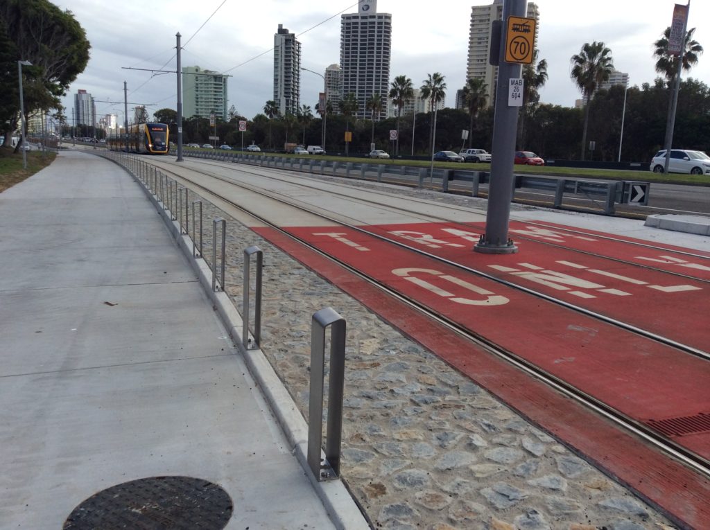 The Gold Coast Light Rail project was completed in 2014 as part of a government plan to ease traffic congestion by providing a light-rail corridor from Helensvale to Coolangatta.